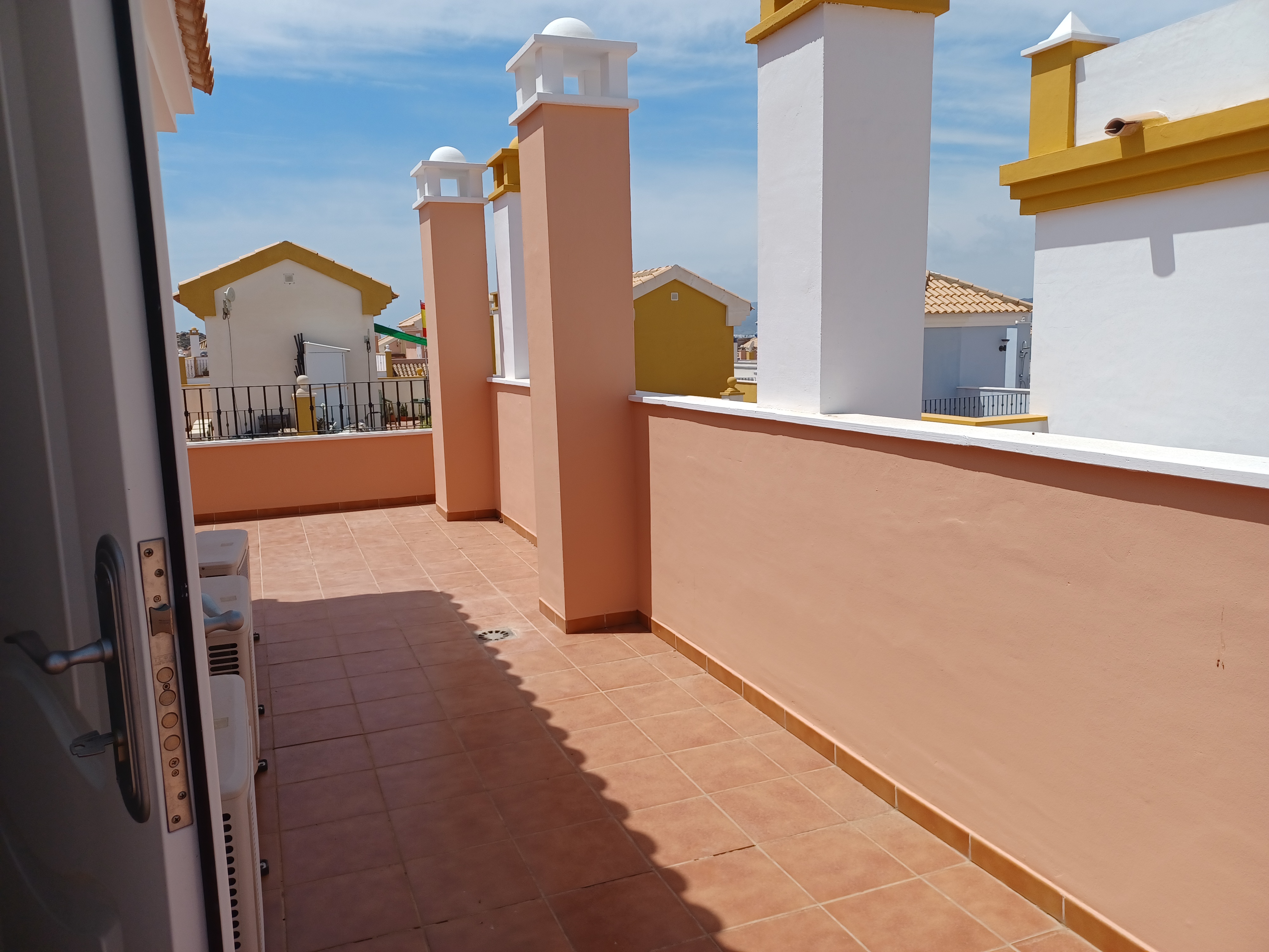 Es gibt eine Terrasse an der Vorderseite und eine Terrasse an der Rückseite des Hauses. Es gibt ein Solarium.
