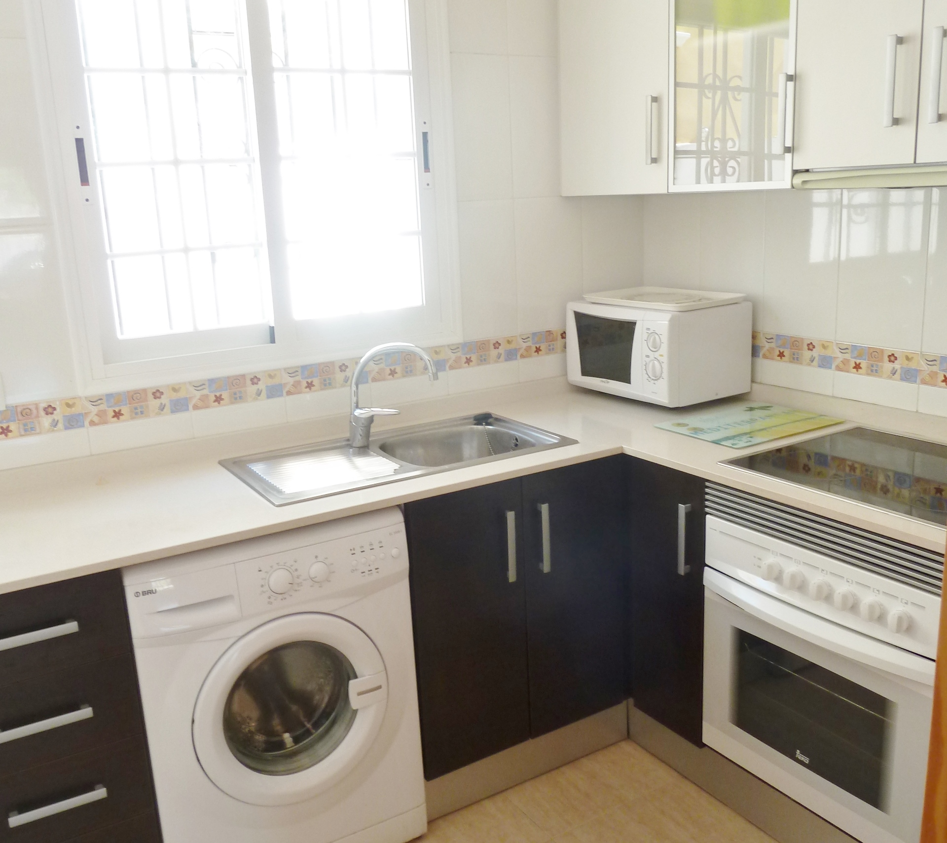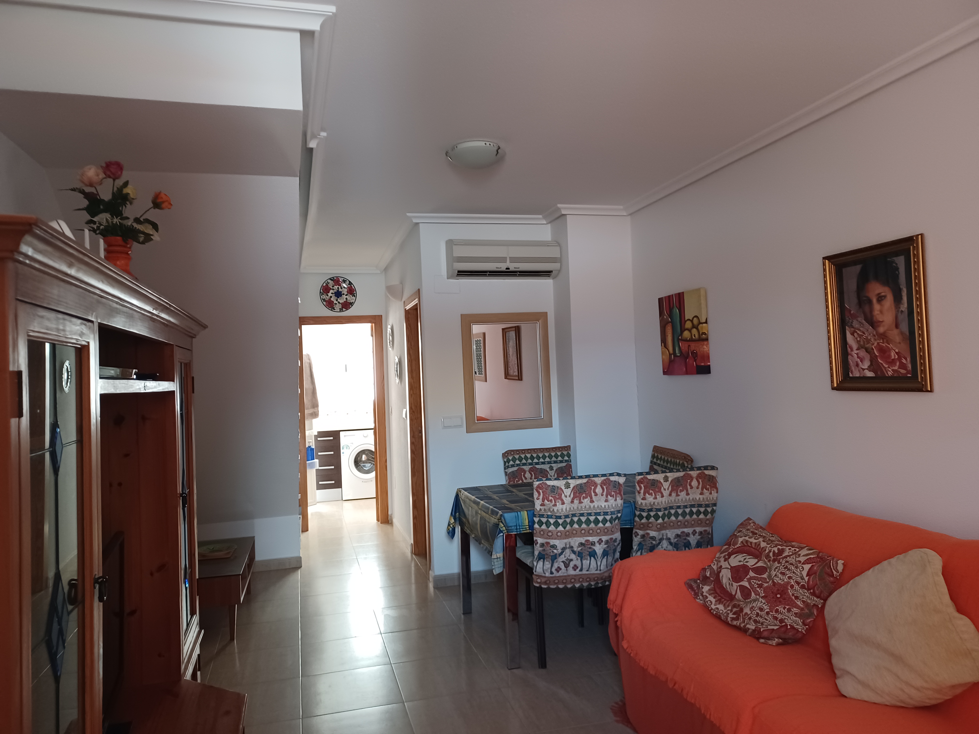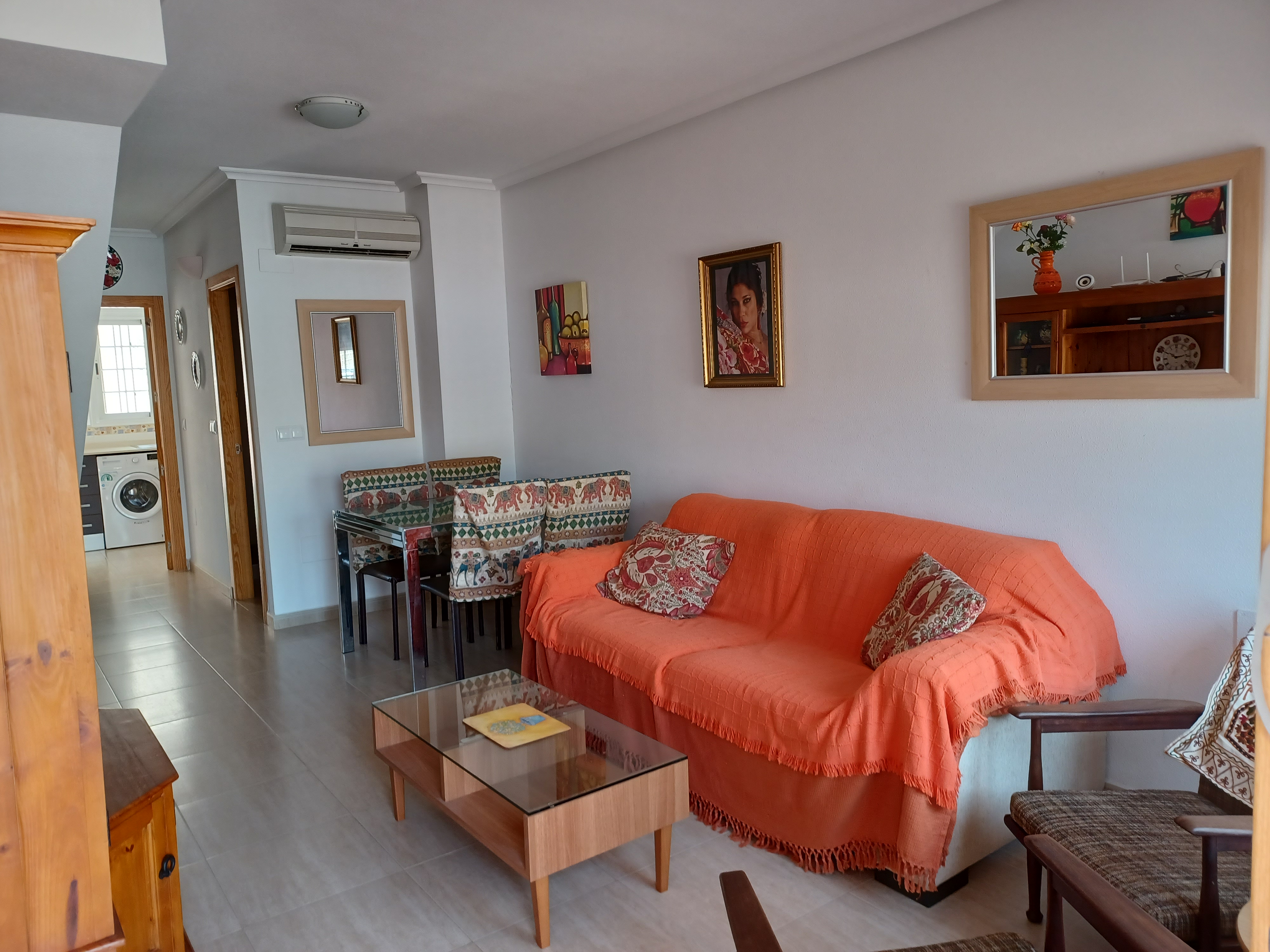 Klimaanlage im Wohnzimmer und in beiden Schlafzimmern. Heizung, TV, Waschmaschine, Bügeleisen, Bügelbrett.